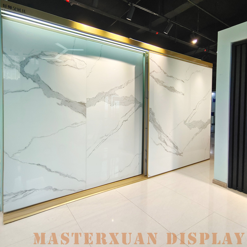 Ceramic tile display stand Electric sliding continuous pattern large slab tile display stand ceramic slate display cabinet