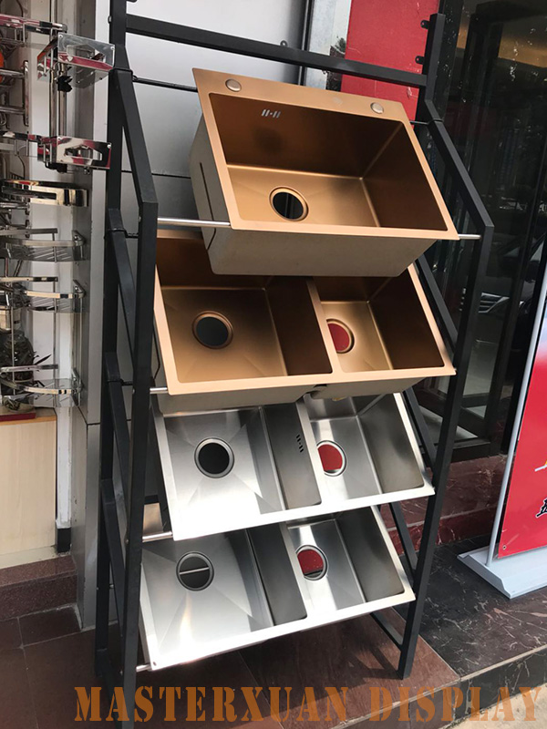 Kitchen stainless steel sink display rack stainless steel washing basin single and double grooves handmade basin sample display stand