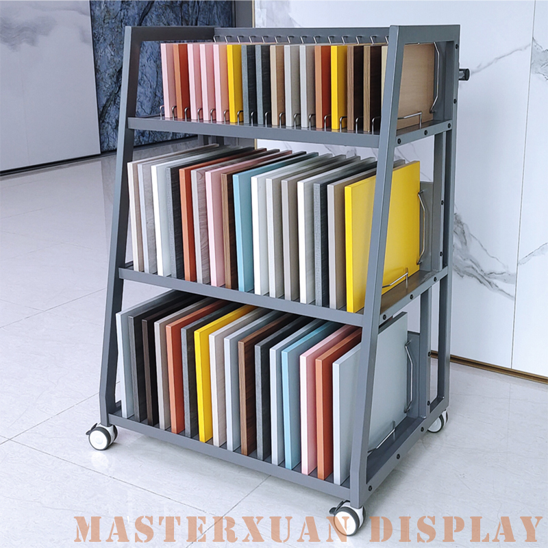 Wardrobe cabinet door panel material decor sample display stand plate color card display mobile trolley